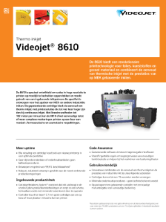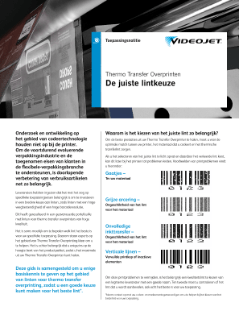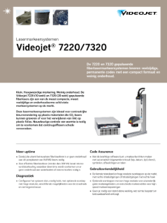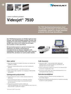 Bedankt voor uw belangstelling in onze producten. Download documentatie van de industriële printers en technologieën Continuous inkjet (CIJ) Specsheet 1550 – Industriële inkjetprinters Specsheet 1650 – Continuous inkjetprinters Videojet® 1620 en 1650 Micro-print codeermachine Specsheet 1710 met gepigmenteerde inkt 1860 Brochure Specsheet: 3140 Specsheet: 3340 Specsheet Videojet 3640 – Laser graveer machine Specsheet: 7220/7320 Laser marker Specsheet Videojet 7510 – Lasermarkeren Specsheet Videojet 7610 – Laser graveer machine 7810 UV Laser Specification Sheet Lasergraveermachines – brochure Specsheet 8610 Wolke m600 oem Specsheet 8510 Lint printer Specsheet 6320 Specsheet 6420 Folieprinter Brochure DataFlex-productlijn Specsheet 2300-serie Dozen bedrukken Videojet 9550 Direct Apply™ Specsheet Brochure inkt en vloeistoffen Aan regelgeving voldoen en waardevolle cosmeticamerken beschermen Hulp bij uw lintkeuze Lasermarkeeroverwegingen voor fabrikanten van cosmetica en persoonlijke en huishoudelijke verzorgingsproducten Industriële producthandleiding Terug naar het platform